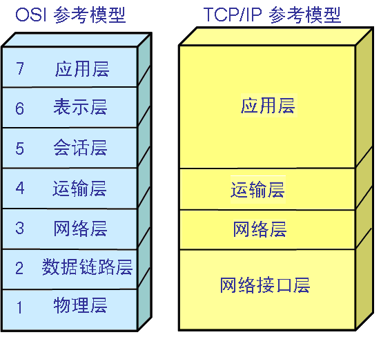 简述TCP/IP模型与OSI参考模型的区别