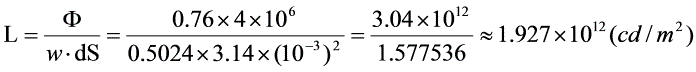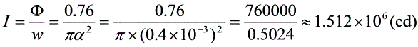 ,当激光束的发散角u很小时,立体角所以,发光强度: