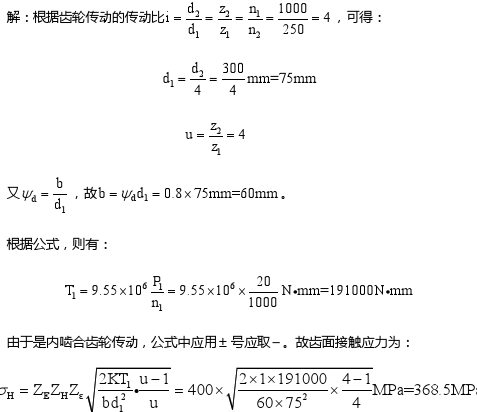(附齿面接触应力计算公式OH=ZEZMZT=9.5x×106P